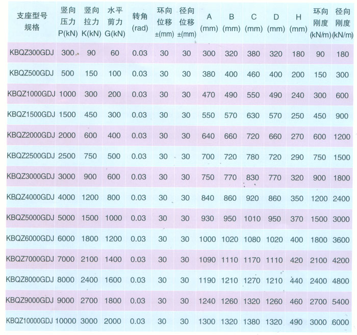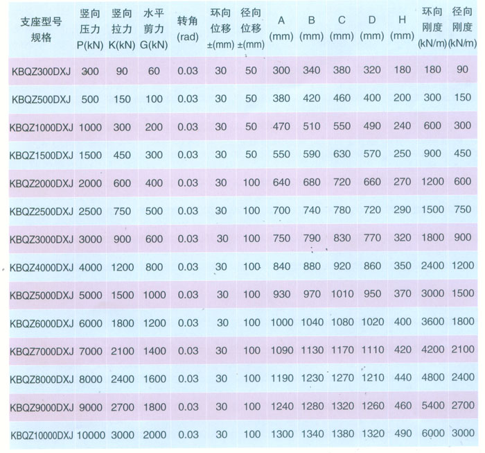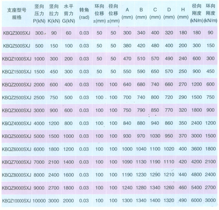 KBQZ-SXJ雙向位移減震型球形支座參數表    表10