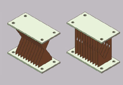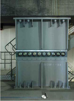 金屬剪切型阻尼器利用耗能片在地震作用下的剪切變形來提供阻尼達到消耗輸入到主體結構中的能量的目的。阻尼器的安裝通過連接板與主體構件(梁、支墩、墻)中的預埋件連接來固定。施工過程包括預埋件安裝、阻尼器連接。安裝順序考慮阻尼器不承受豎向力應采取下—上—中,后裝阻尼器的順序,但不易施工,也可采取從下到上的順序進行安裝。主體結構設計時一般采用反應譜分析方法,過去國內主流設計軟件不能輸入阻尼器構件,只能采用等效構件進行模擬詳見后文。由于采用等效構件的方式需要反復試算且有一定的誤差,建議在軟件可能實現的前提下還是直接按阻尼器構件建模。目前部分軟件已能實現反應譜法分析中考慮阻尼器構件進行主體結構分析及配筋設計